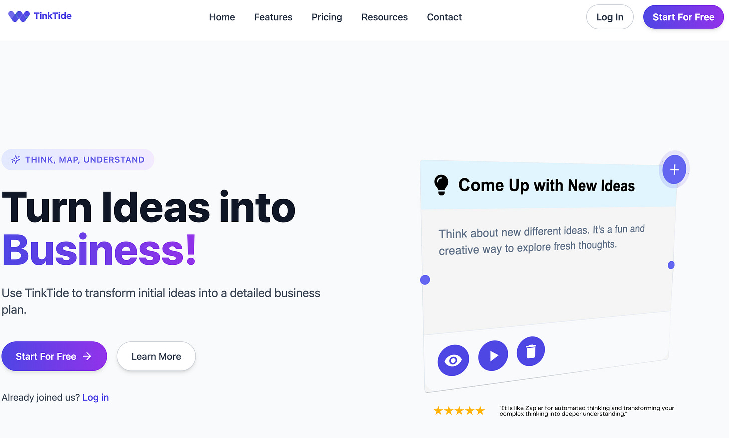 No siempre necesitas una IA que te diga lo que hacer. A veces necesitas una que te haga las preguntas correctas. Tinktide no escribe por ti, pero piensa contigo. Funciona como un cuaderno de estrategias, una especie de mentor en forma de plataforma. Está diseñada para estructurar pensamientos, clarificar ideas y ayudarte a explorar caminos que no habías considerado.
